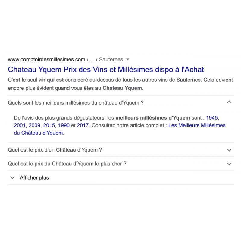 Celles-ci s’affichent sur plusieurs lignes, sous la forme d’un encadré, au sein des pages de résultats de Google.
