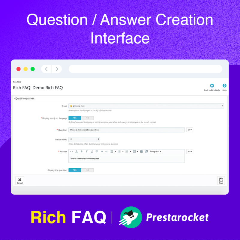Ultra rapide et léger, le module ajoute automatiquement aux boutiques PrestaShop le balisage des données structurées du FAQ Schema, et ce au format JSON-LD.